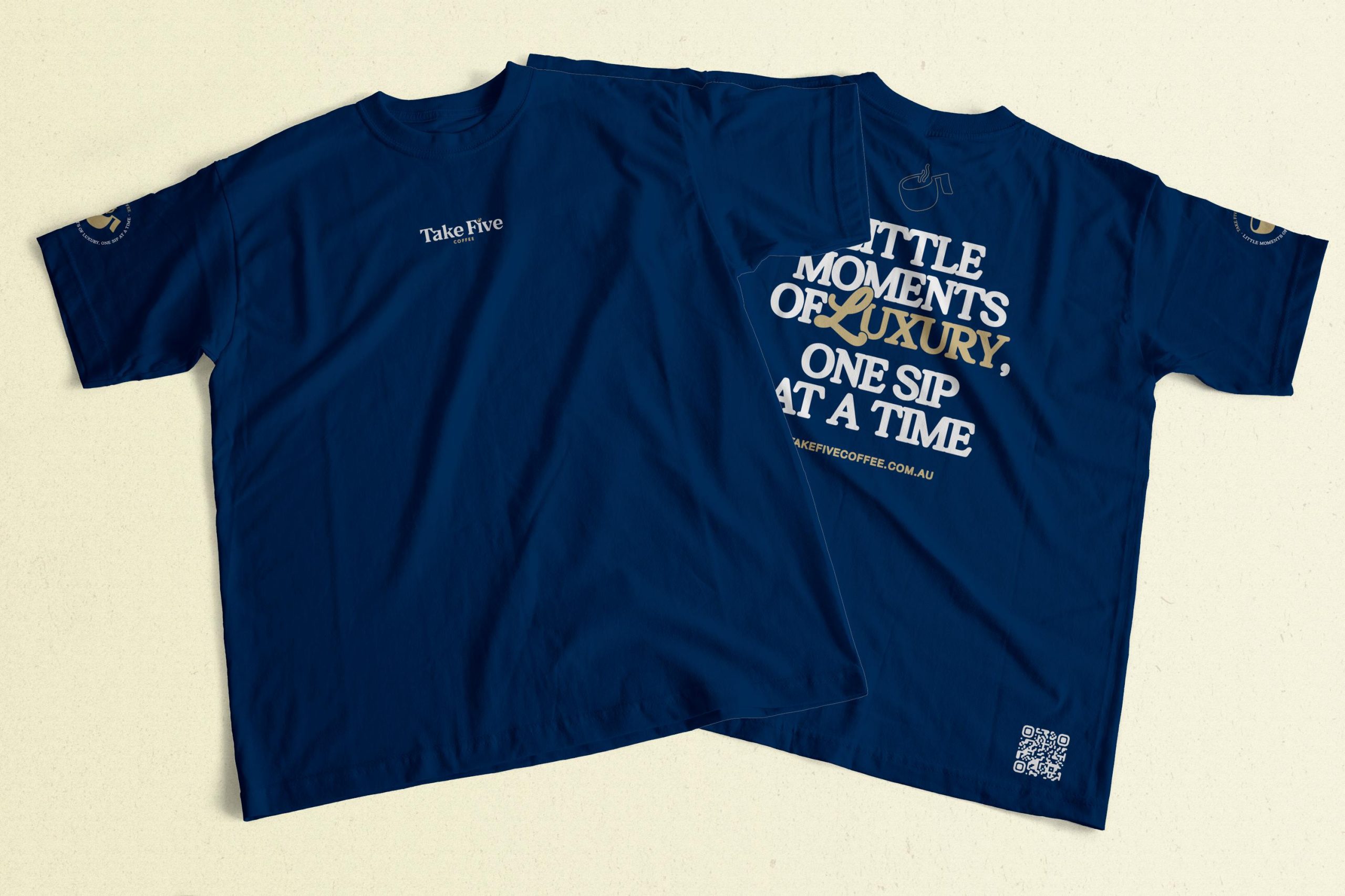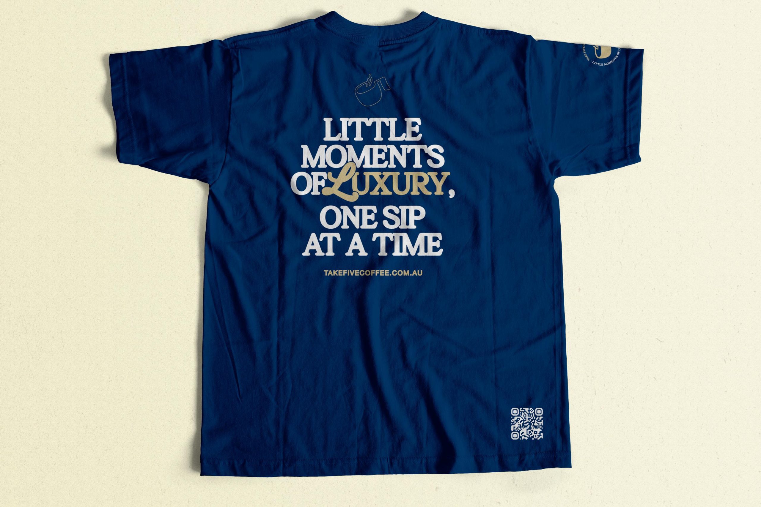 The Take Five Coffee T-Shirt offers a comfortable fit and timeless style, featuring our signature logo for everyday wear.